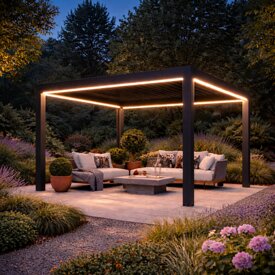 Mit integrierter LED-Beleuchtung verwandelt sich Ihre Pergola im Handumdrehen vom Sonnenplätzchen zur stimmungsvollen Abendlounge. Warmweißes Licht, das Atmosphäre schafft – für Momente, die länger dauern dürfen.