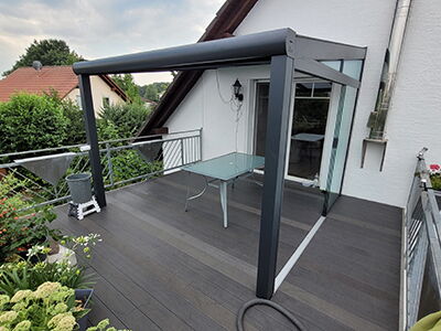 - Dein Vorteil: Du bestimmst das Klima! Öffne die Elemente vollständig an warmen Tagen für eine frische Brise oder schließe sie bei Wind und Wetter, um geschützt zu sein. Die rahmenlosen Glaslösungen sorgen zudem für eine ungestörte Panoramaaussicht und schaffen eine moderne, offene Optik.